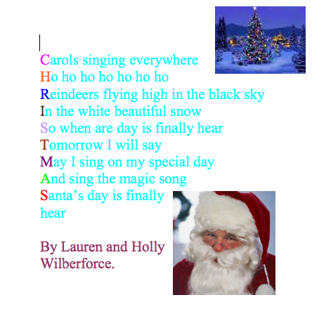 Year 4 have created their own Christmas Acrostic poems as part of our unit of work on 'Poetry'.